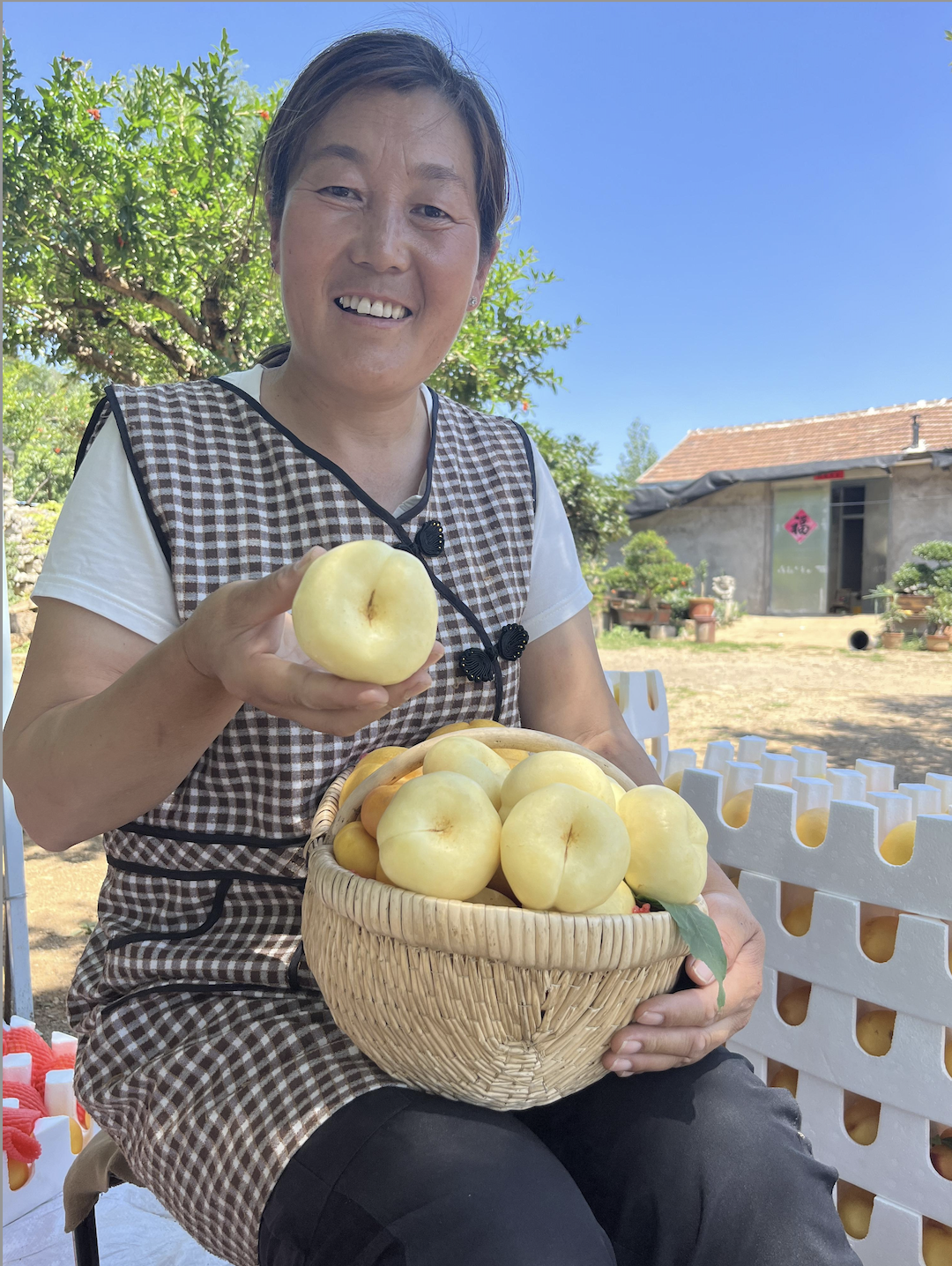 今年蜜桃季,吕玉霞前后卖出8万单蜜桃,卖得最好的是彩虹蟠桃。她还帮老乡们搭建了一个互联网小卖店,让他们不用出门就能把蒙阴蜜桃卖到全国。